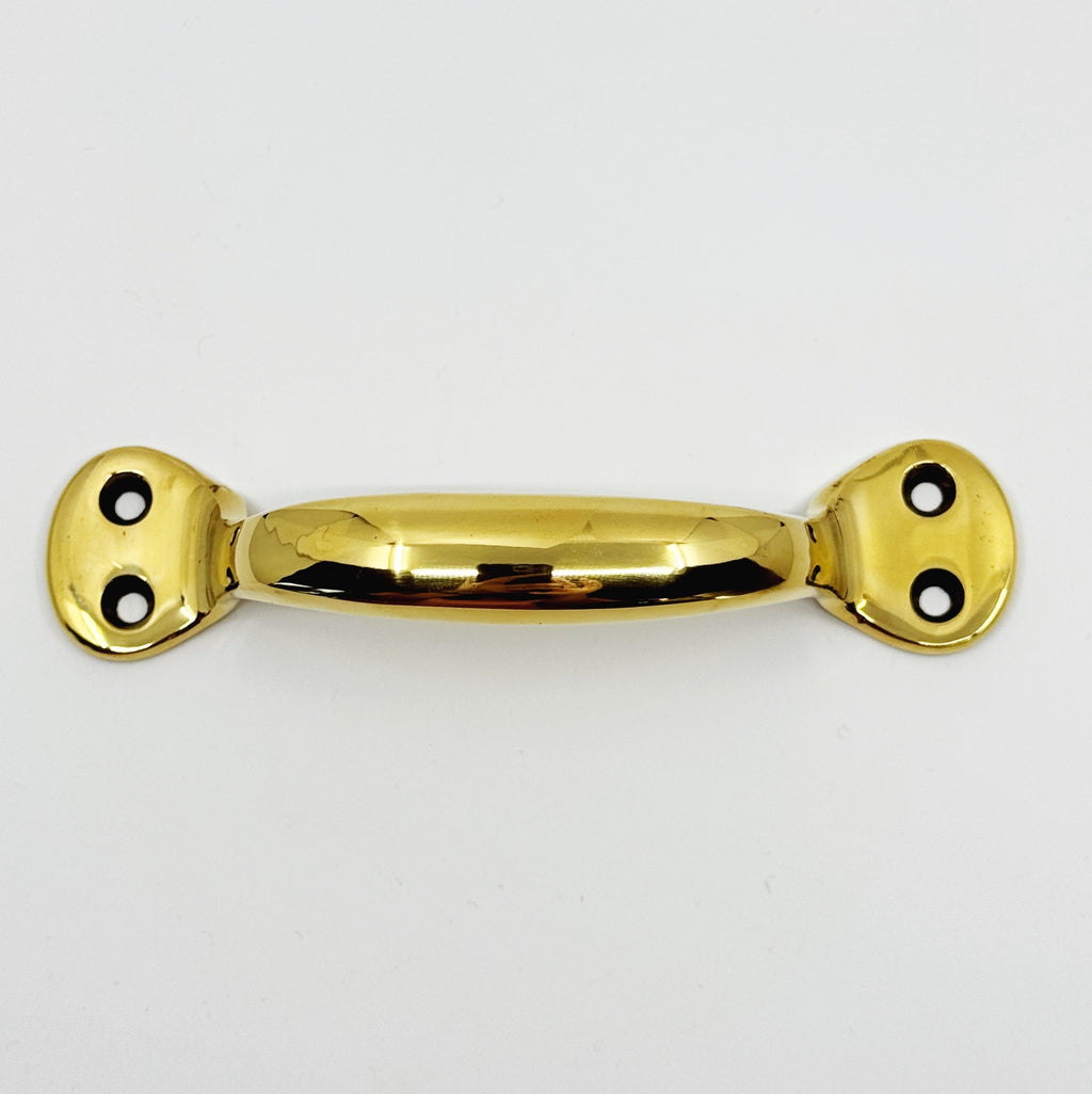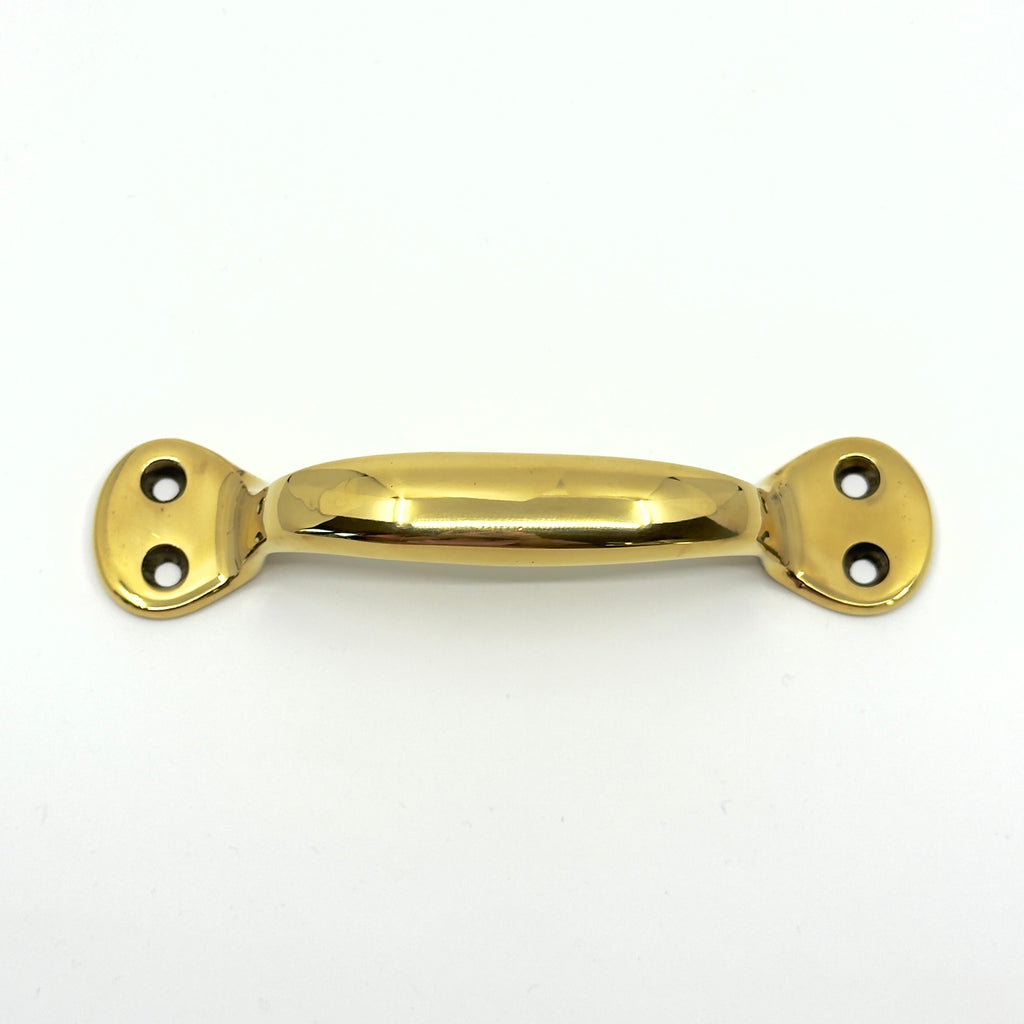 Unlacquered Brass Handle "Hall" Grip for Drawers, Doors And Windows. These pulls can be used on kitchen cabinets or as drawer pulls on any other application including drawers and cabinet doors, and for screen doors. This item is made of unlacquered brass and will patina. Comes with screws for mounting. Sold per piece.
